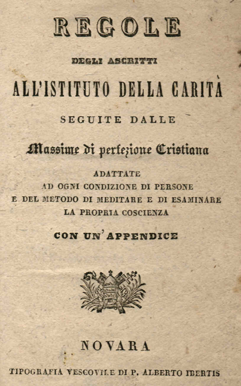 1842: Regole comuni degli Ascritti all'Istituto della Carità